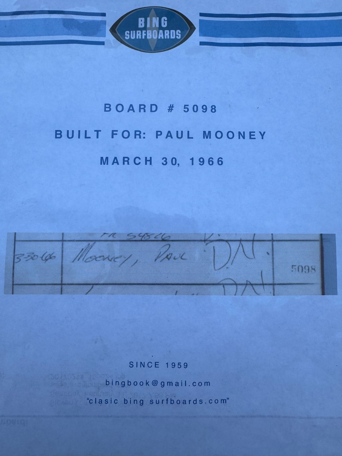 Provenance: Board has been in the possession of a San Diego surfer for decades — he is moving out of country. Can’t take it with him. FYI – we brought this board by the BING factory for discerning eyeballs and Matt Calvani confirmed this board is all original.